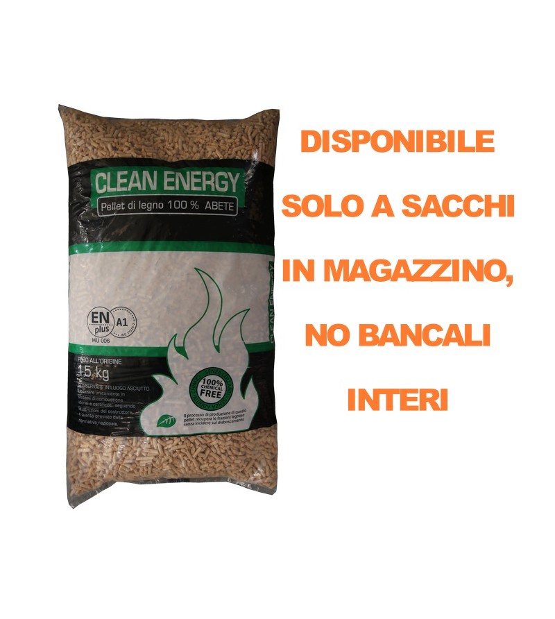 Il Pellet Clean Energy viene prodotto solamente con la segatura di abete proveniente da un'azienda di produzione di finestre ed infissi primaria a livello internazionale. La segatura deriva dagli scarti di lavorazione già essiccati e non necessita quindi di passare nei forni. Questo gli conferisce un colore naturalmente tendente al giallo. Ovviamente gli scarti vengono prelevati prima di qualsiasi trattamento chimico! È uno dei nostri prodotti più venduti perchè unisce la qualità durante la combustione al prezzo migliore.